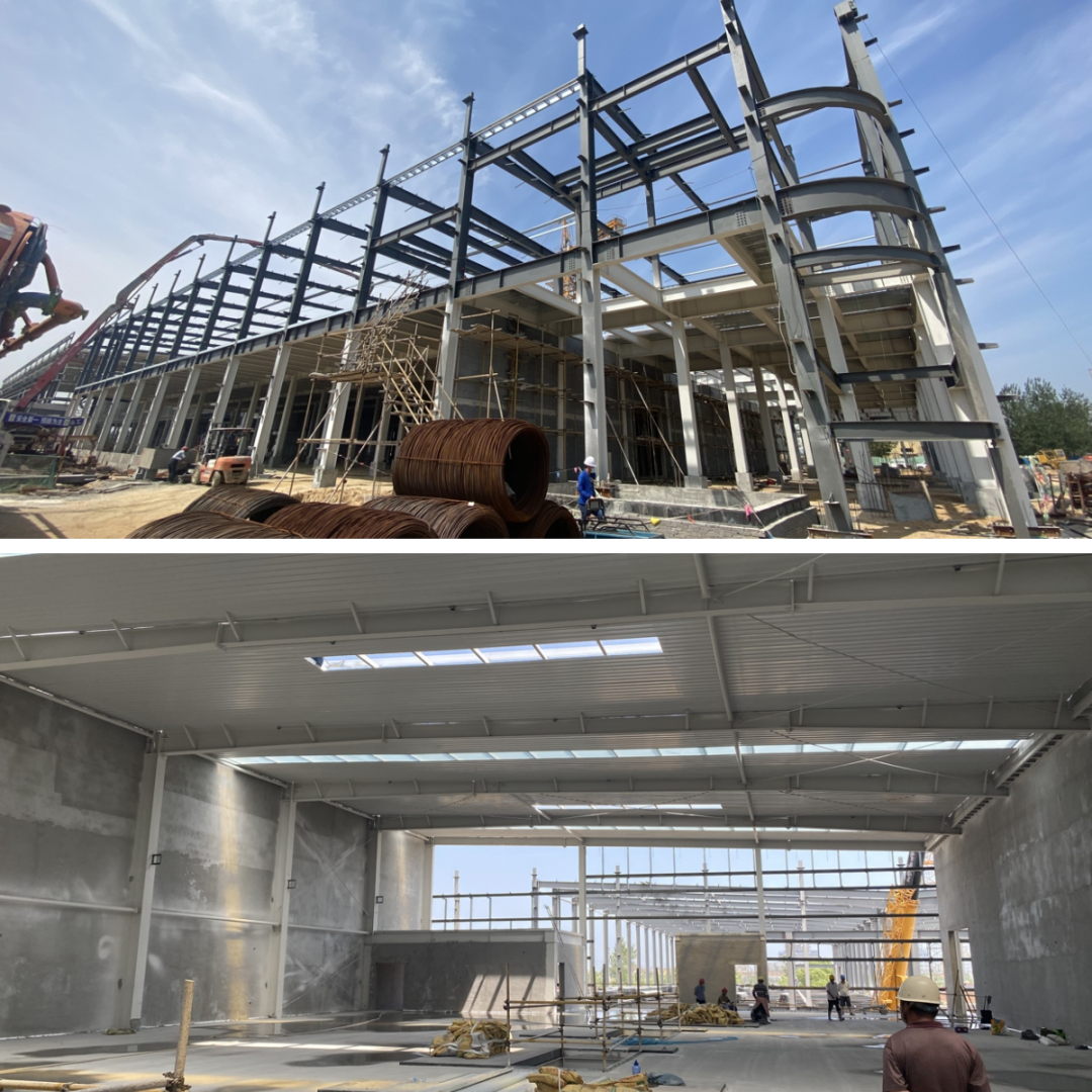 本項目最終平米造價指標為1340元/m2,較砼框架方案每平米節省400~500元,總計節省約1000萬,現場作業量大大減少,現場基礎工程施工的同時工廠鋼結構構件同步進行加工,施工速度提升20%,為業主節省了大量經濟成本和時間成本,獲得了業主的稱贊,再一次說明向設計要效益的重要性。
