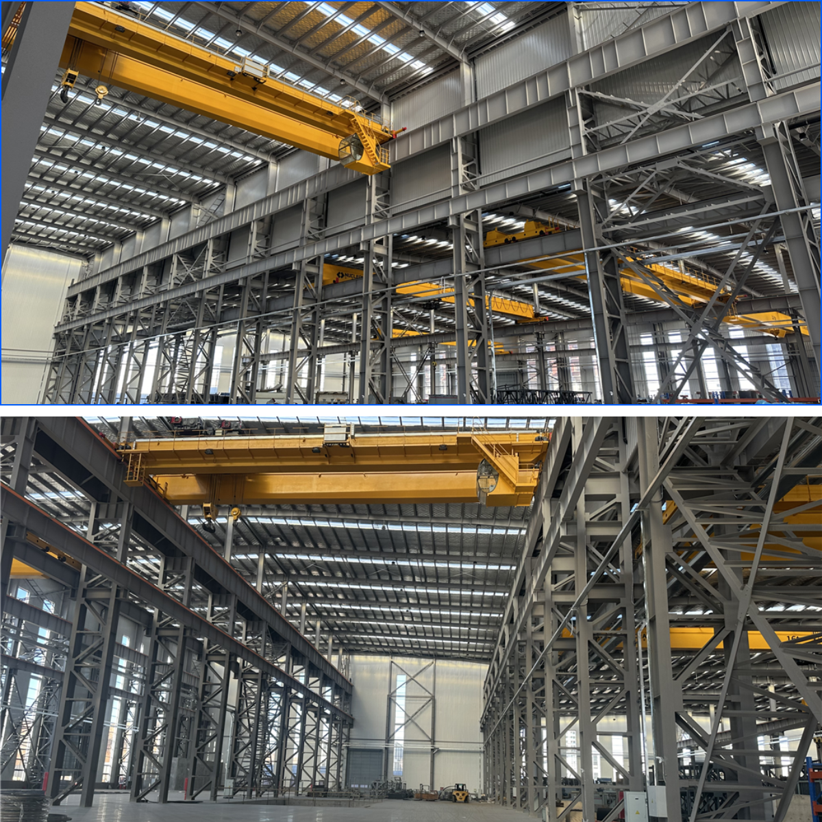 本項目1#廠房檐口高度15m左右,最大跨度25m,單臺吊車最大噸位32t,為單層鋼結(jié)構(gòu)廠房;2#廠房檐口高度26m,最大跨度32m,單臺吊車最大噸位200t,為重鋼廠房。