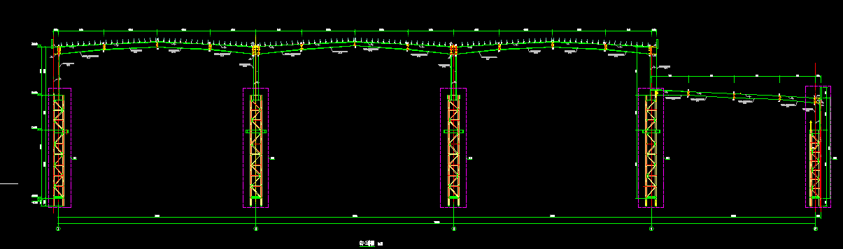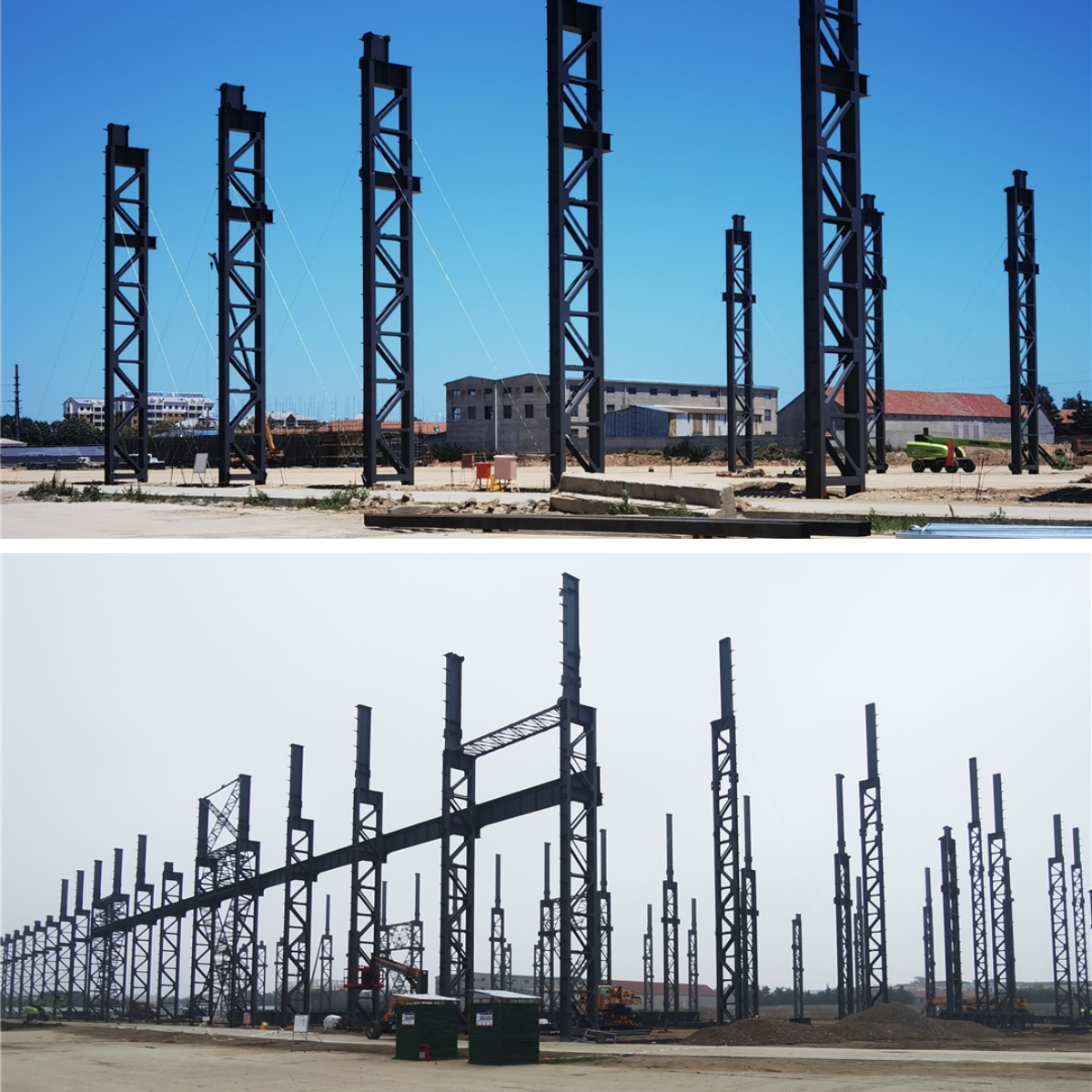 本項目一期共建造2棟廠房,其中1#廠房建筑面積5.6萬平方米,2#廠房4.8萬平方米。廠房跨度52米,單體吊車噸位60t,起吊高度20米,檐口高度28.5米,為重鋼廠房。