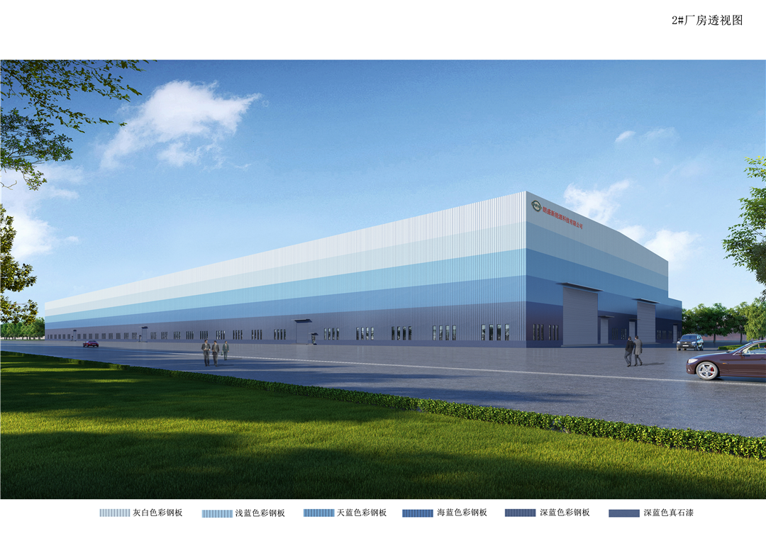 在建筑立面設(shè)計上,因?yàn)楸卷椖渴呛I巷L(fēng)力發(fā)電項目,建筑外立面設(shè)計與產(chǎn)品相聯(lián)系提取海洋的設(shè)計元素,從深藍(lán)到淺藍(lán)的過度作為建筑的主要外墻顏色。在不增加工程造價的基礎(chǔ)上,使建筑物更加簡潔、美觀、大方。因葉片生產(chǎn)過程中需要廠房在固定高度的位置溫度控制在18度左右,所以我們在立面設(shè)計上盡量減少開窗面積,采光通風(fēng)主要以屋面采光帶及薄型通風(fēng)器解決。